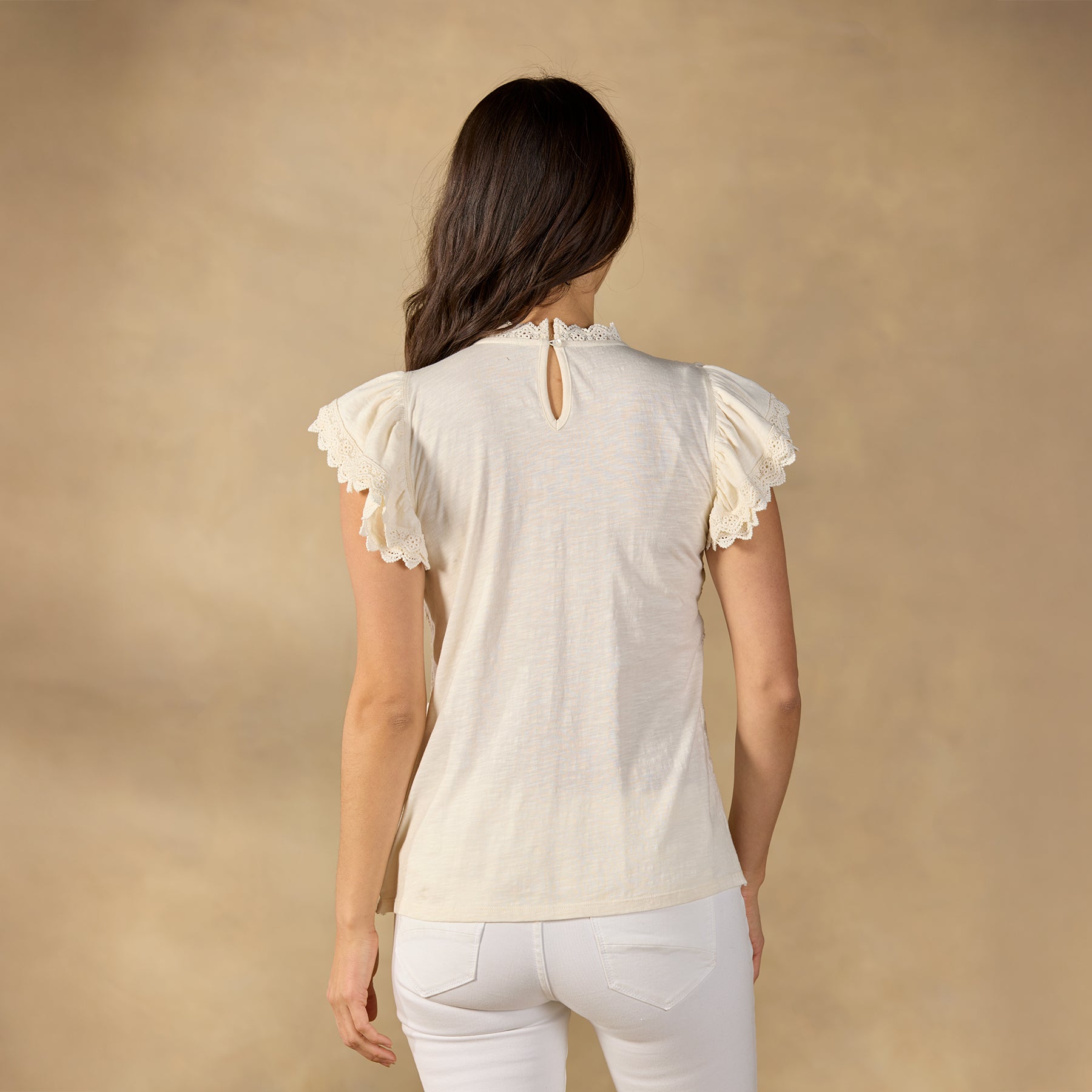 A feminine touch in every detail. our Alhambra Top is textured with intricate crochet. an extra embellishment of eyelet along the sleeves. Cotton slub back. Cotton. Machine wash. Imported. Exclusive. Sizes XS (0–2). S (4–6). M (8–10). L (12–14). XL (16–18). XXL (20–22). Approx. 24l.