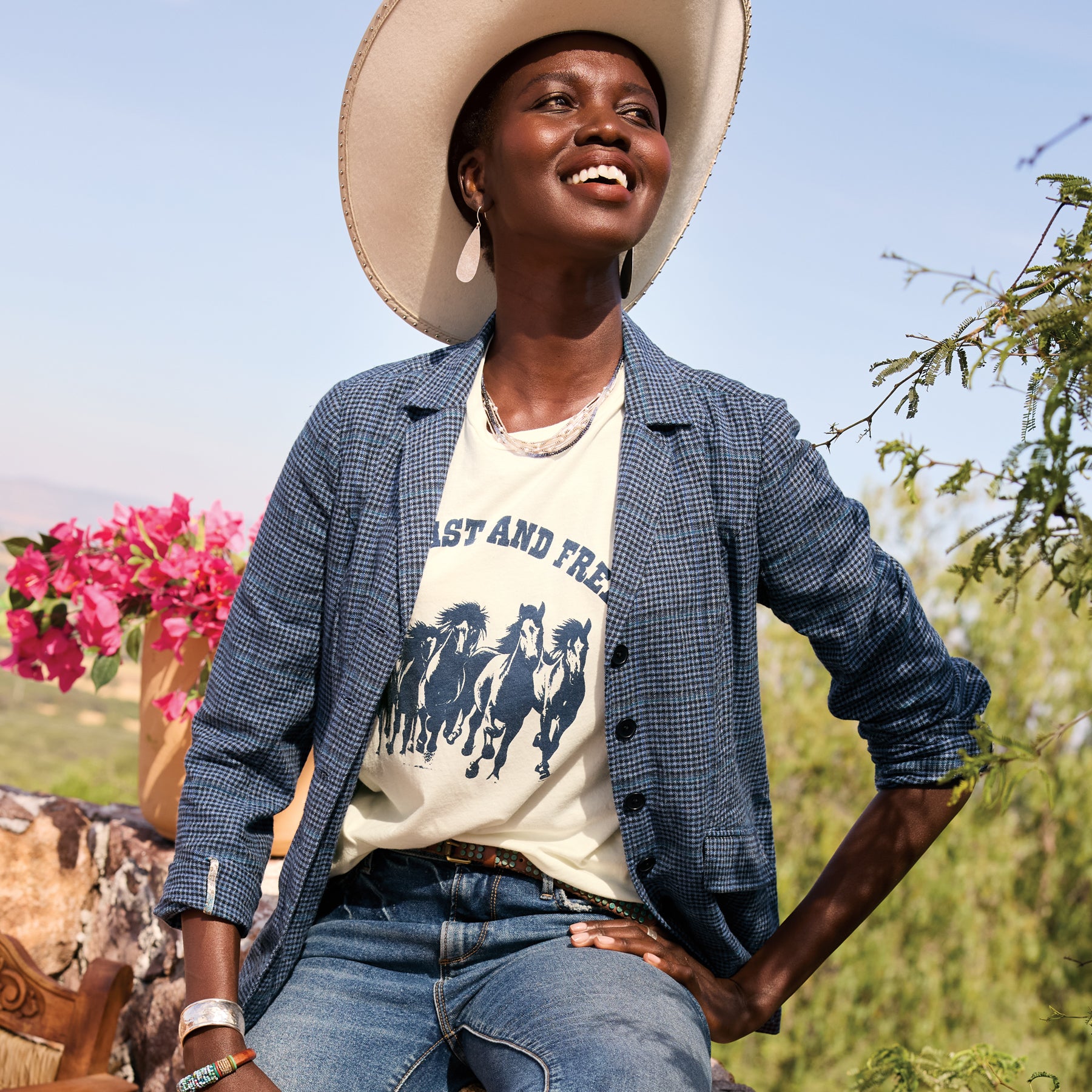 Here’s a match made in heaven: the sweet structure of an ultra-femme blazer. with the easygoing vibes of softest linen! Five-button placket with high-notch collar. flap pockets. back cinch belt and contrast floral lining. Cotton/linen. Machine wash. Imported. Exclusive. Sizes XS (0-2). S (4-6). M (8-10). L (12-14). XL (16-18). XXL (20-22). Approx. 25.5l.